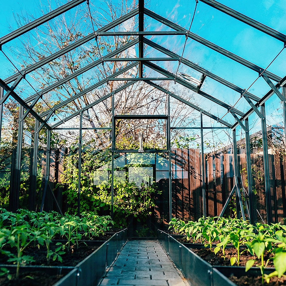 Изначально теплицы GLASS HOUSE разрабатывались под покрытие стеклом, поэтому запас прочности конструкции позволяет с легкостью выдерживать повышенные ветровые и снеговые нагрузки!